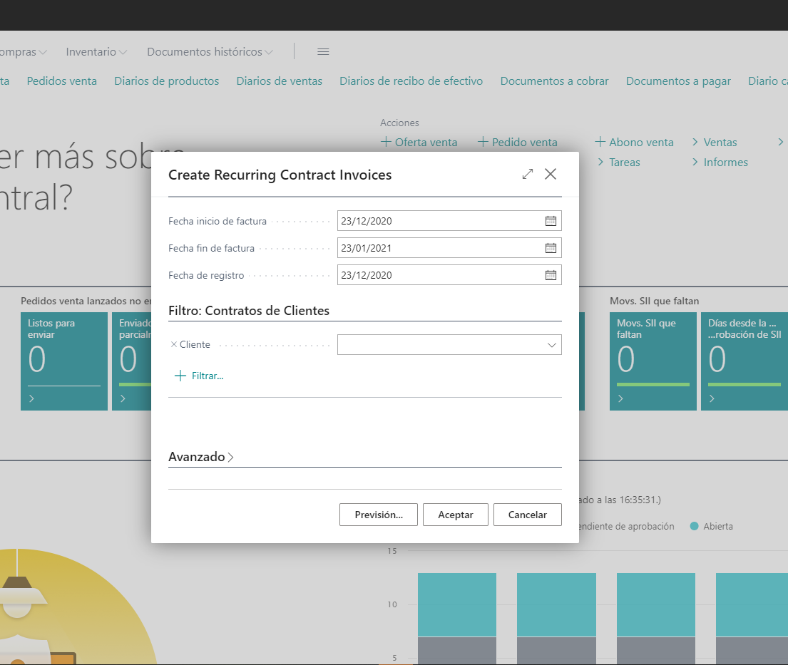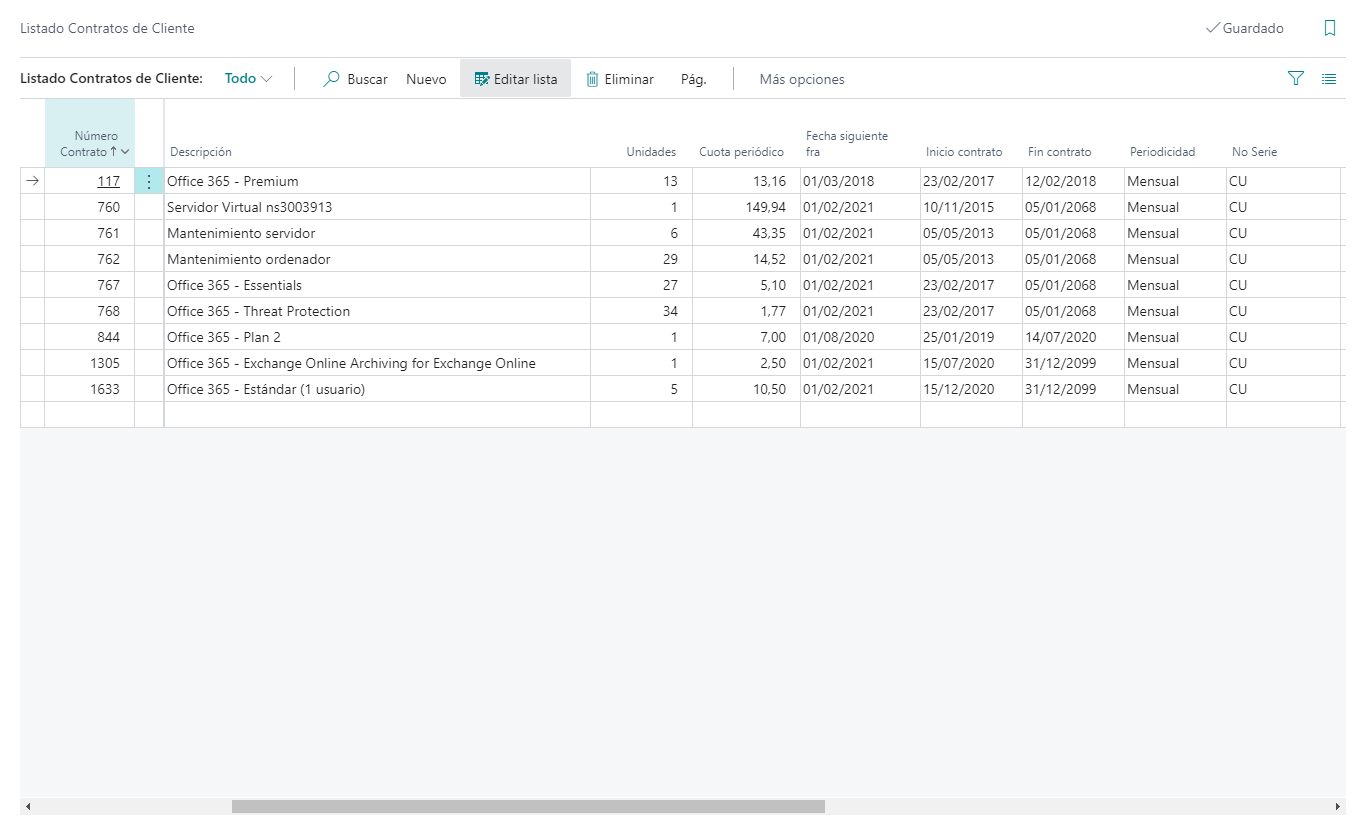 Gestión de contratos, cuotas y facturas periódicas. Gestiona periodicidad, bloqueos y ítems a facturar. Crea masivamente facturas recurrentes a partir de las cuotas periódicas.